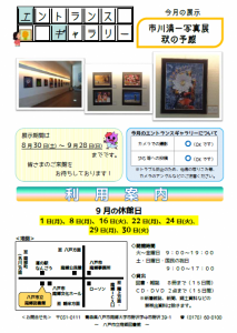 ※9月の休館日は、1日(月)、8日(月)、16日(火)、22日(月)、24日(火)、29日(月)、30日(火)です。
