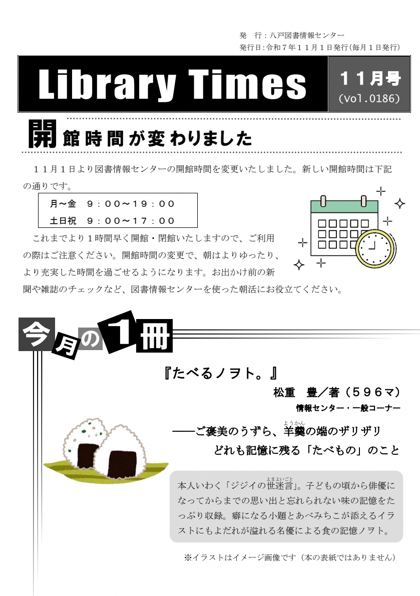 11/1(土)から図書情報センターの開館時間が変わります。
